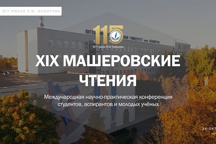 Подробнее...24-го октября в ВГУ имени П.М. Машерова при поддержке Министерства образования Республики Беларусь состоится международная научно-практическая конференция студентов, аспирантов и молодых ученых «XIX Машеровские чтения».