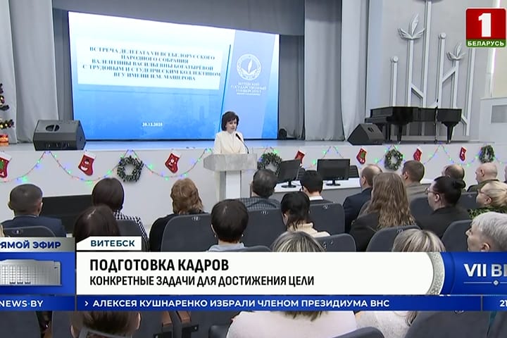 В Витебском государственном университете имени П.М. Машерова 20 декабря состоялась встреча ректора вуза, делегата VII Всебелорусского народного собрания Валентины Богатырёвой с трудовым и студенческим коллективом.