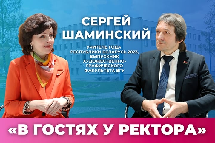 В новом выпуске авторской программы Валентины Богатырёвой «В гостях у ректора» – обладатель звания «Учитель года Республики Беларусь – 2023», выпускник художественно-графического факультета ВГУ имени П.М. Машерова Сергей Михайлович Шаминский.