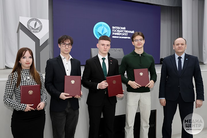 23-го марта первый проректор ВГУ Андрей Мехович поздравил студентов, которые демонстрируют отличные результаты в учебе и науке и прославляют свою alma mater. Андрей Павлович вручил свидетельства о назначении стипендии Президента Республики Беларусь.
