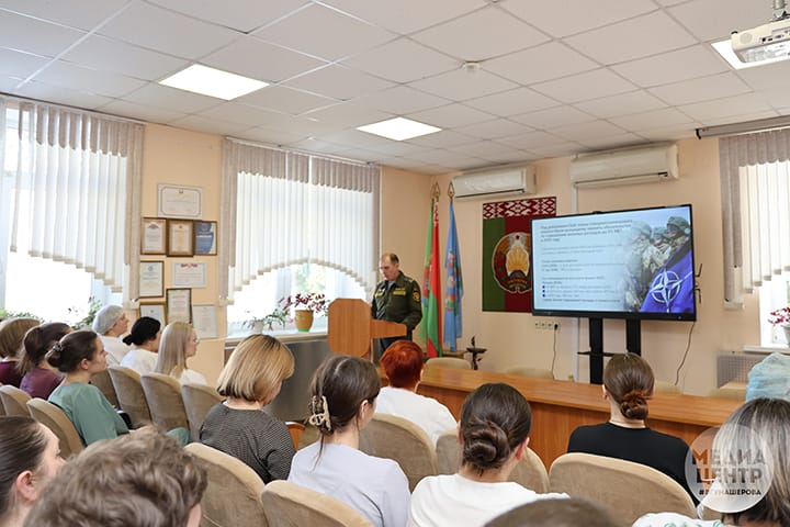 20-го февраля начальник военной кафедры ВГУ Дмитрий Николаевич Мальцев выступил перед трудовым коллективом Витебского областного клинического родильного дома в рамках Единого дня информирования.