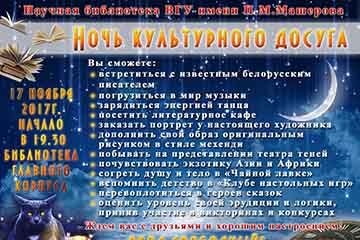 Научная библиотека ВГУ приглашает на «Ночь культурного досуга» 17 ноября в 19:30. В программе встреча с писателем, музыка, танцы, театр теней, настольные игры и многое другое.